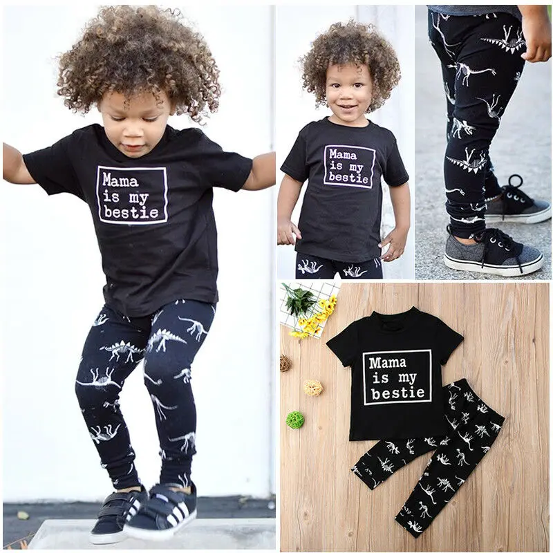 Черная футболка с короткими рукавами для новорожденных мальчиков штаны с рисунком динозавра комплекты из 2 предметов летняя повседневная одежда