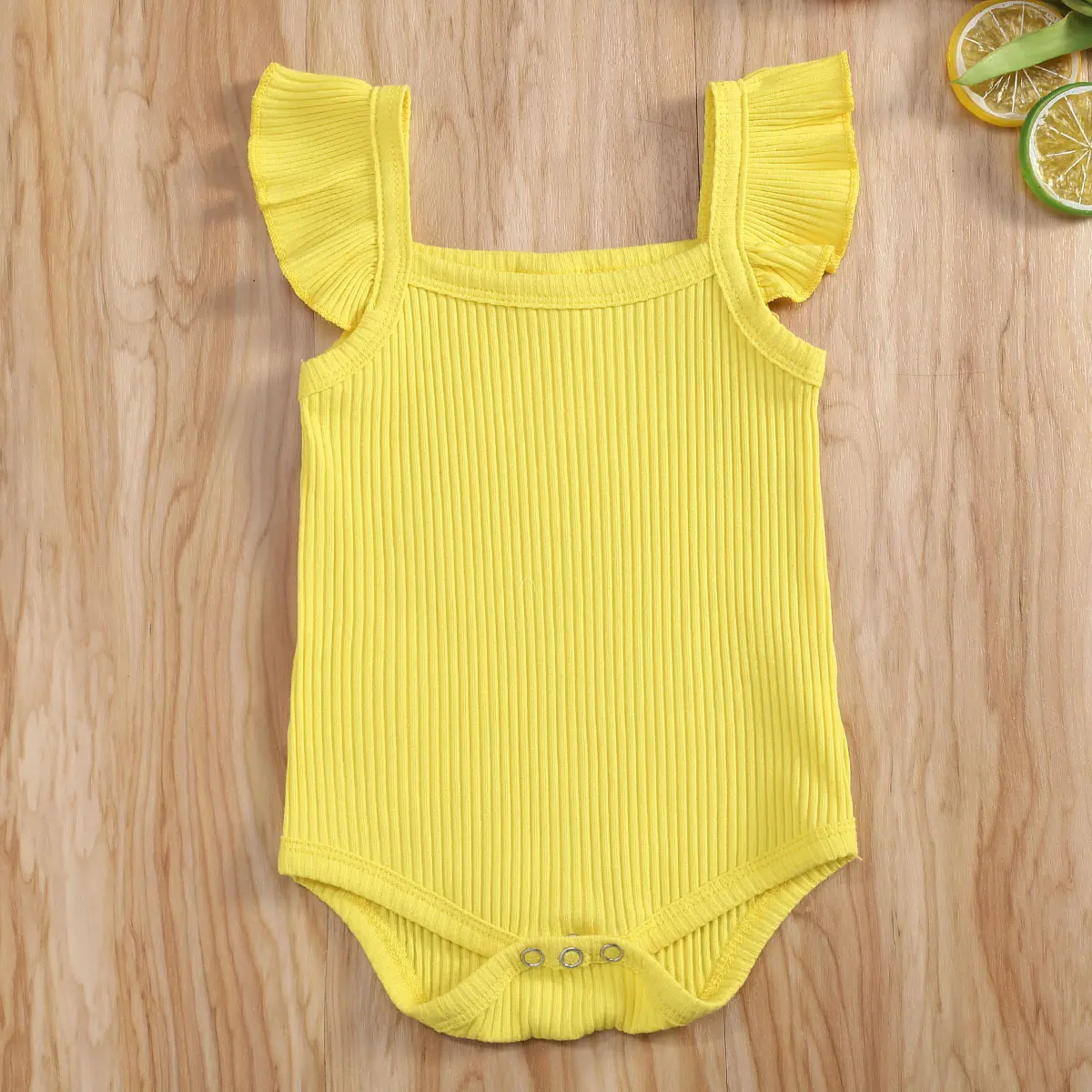 Emmababy/Одежда для новорожденных девочек летний однотонный трикотажный хлопковый комбинезон с рукавами-крылышками, цельный комбинезон пляжный костюм
