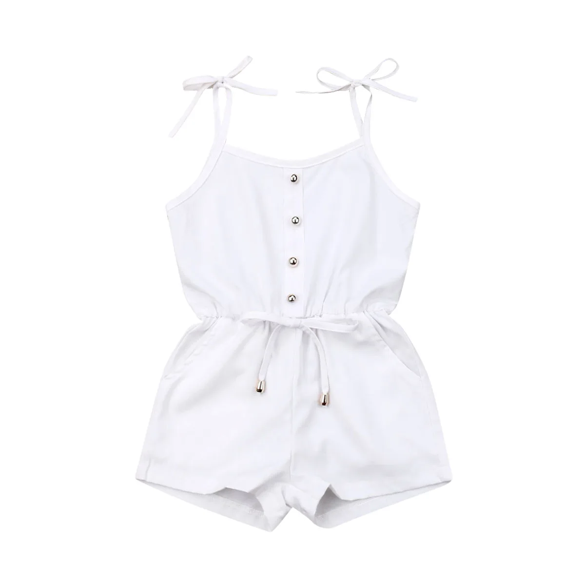 От 6 месяцев до 3 лет Детская одежда для маленьких девочек, без рукавов, сплошной белый комбинезон на лямках; штаны-комбинезон, одна деталь ле...