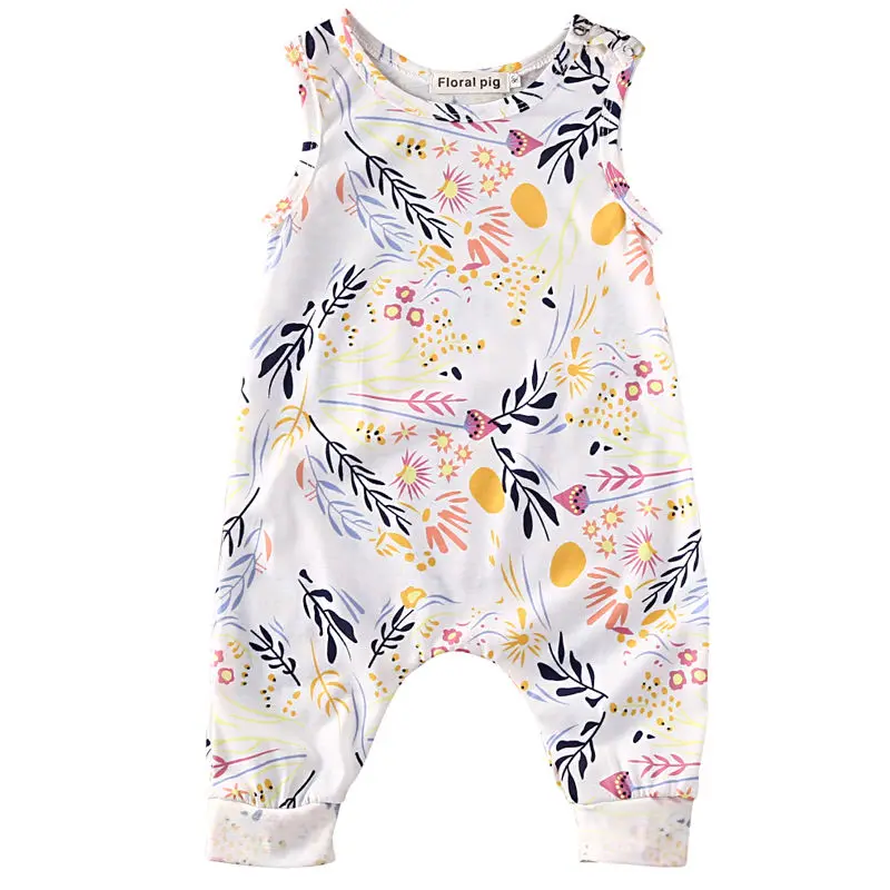 Без рукавов для малышей ползунки Дети мальчик девочка цветочный комбинезон одежда