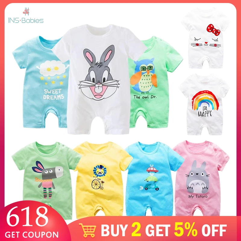 Летние новорожденных Детский комбинезон для младенцев ползать короткий рукав хлопок комбинезоны для малышек детские пижамы мультфильм жи...