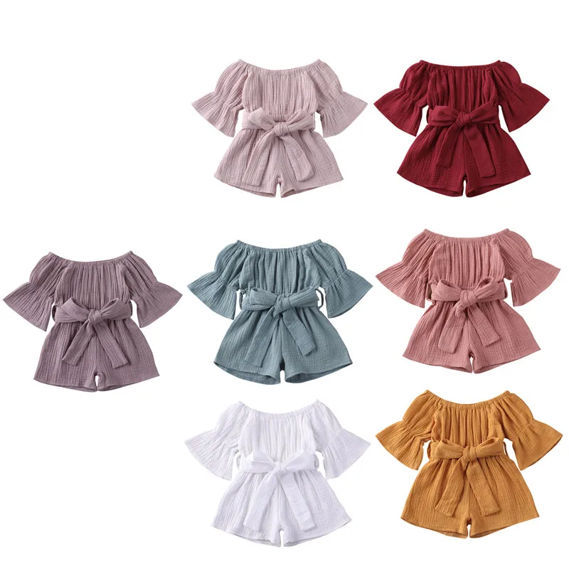 Baby Girls Summer Clothing Princess Baby Girls Off Shoulder Cotton Linen Romper Jumpsuits Toddler Infant Cotton Casual Outfits