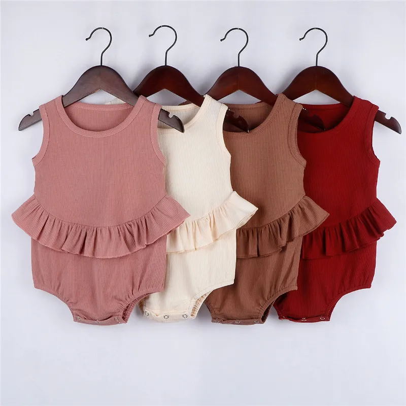 4 вида цветов, летние детские комбинезоны для маленьких девочек и мальчиков, вязаные комбинезоны в рубчик без рукавов с оборками для новорожденных, цельная одежда