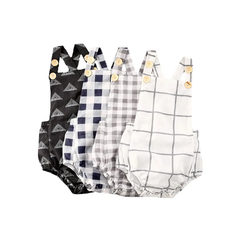 Комбинезон для маленьких мальчиков; Летний комбинезон без рукавов для новорожденных девочек; Клетчатый хлопковый льняной комбинезон; Цельнокроеные Комбинезоны на подтяжках