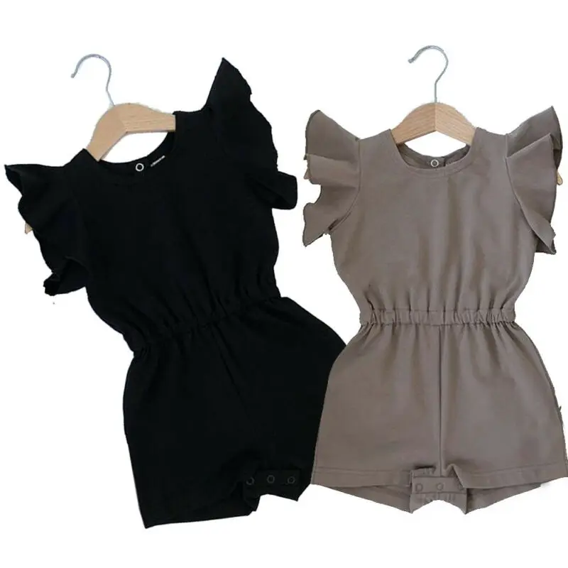 Летний комбинезон для маленьких девочек с рукавами-крылышками; Хлопковое боди; Цельный комбинезон; Одежда для подвижных игр; От 0 до 2 лет