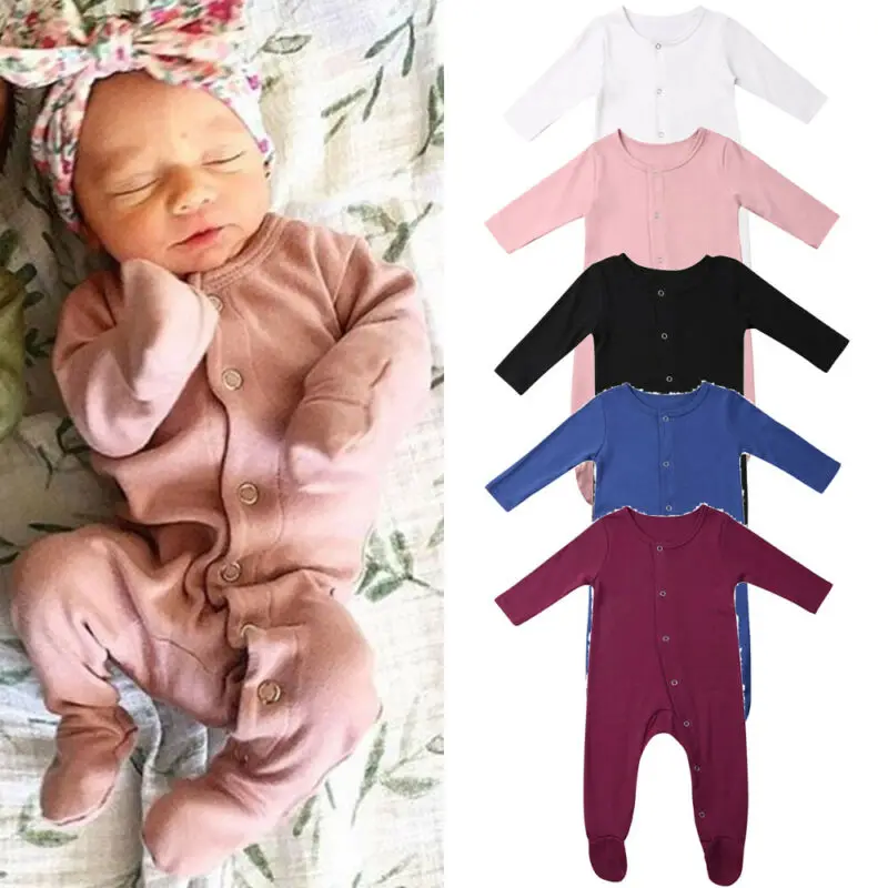 Одежда для новорожденных мальчиков и девочек; Однотонный комбинезон с длинными рукавами для малышей; детские комбинезоны; осенняя одежда в ...