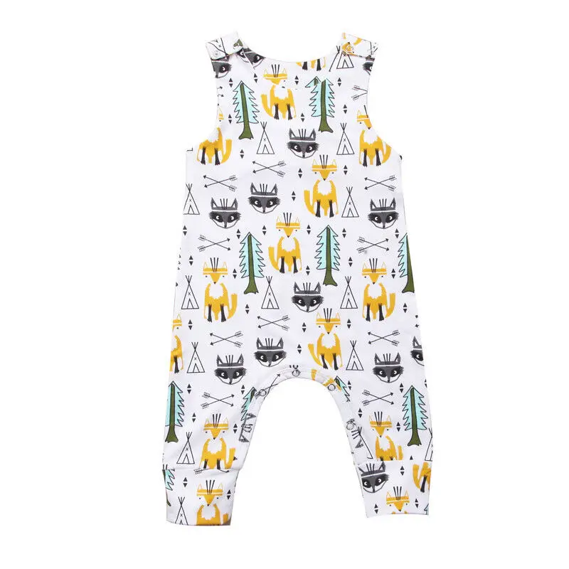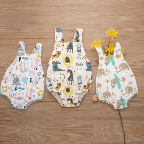 Хит лета, Стиль без рукавов для новорожденных, для маленьких мальчиков и девочек с забавными персонажами из мультфильмов комбинезон с лисич...