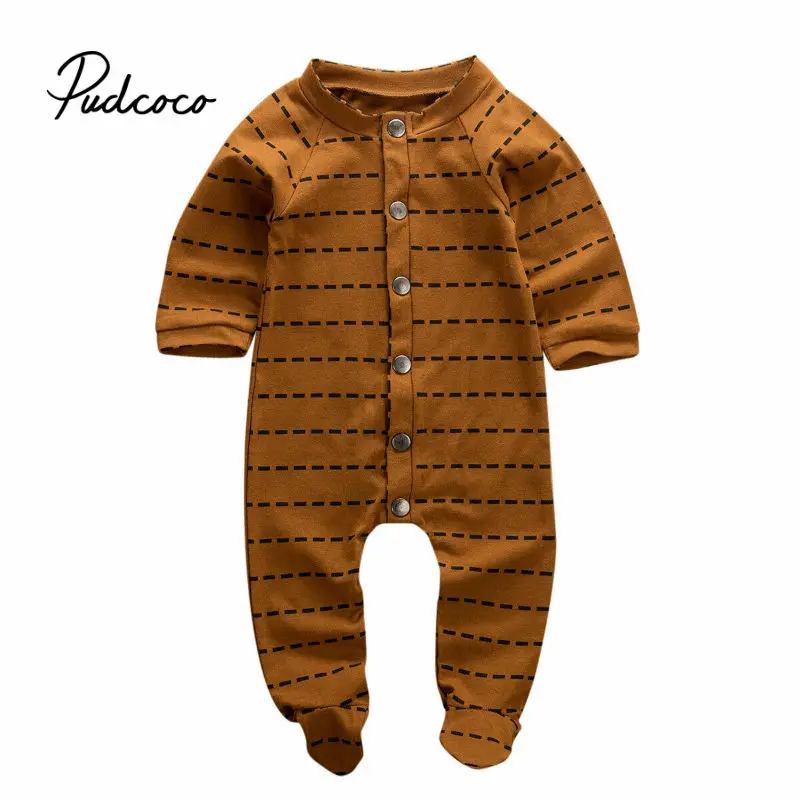 Pudcoco/Новинка 2020 года; коричневые комбинезоны в полоску для маленьких девочек и мальчиков; детская Рождественская Одежда для младенцев хлопк...