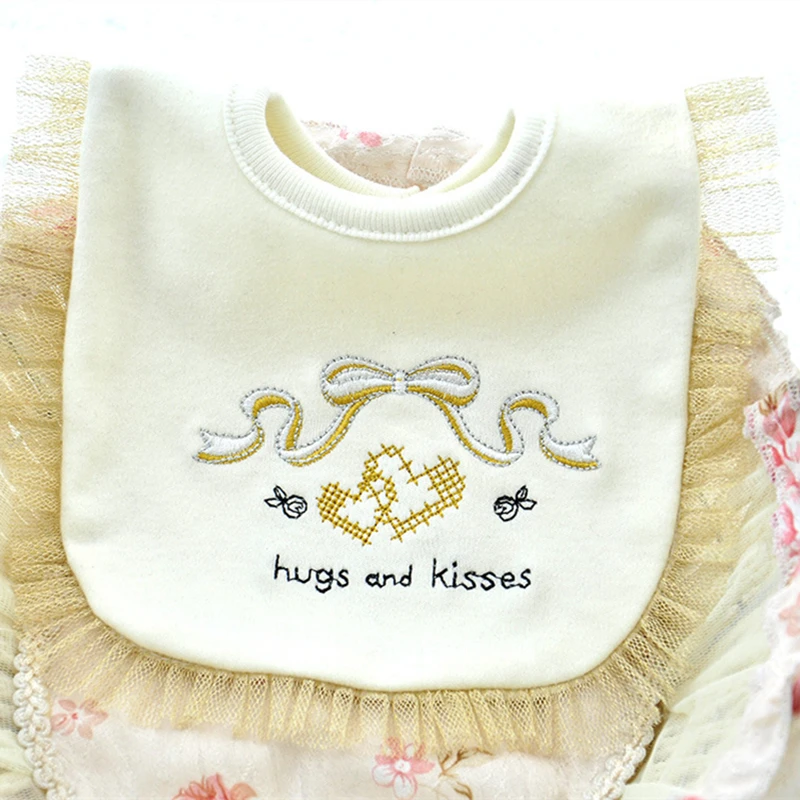 Вышивка детские вещи поставщиков Золото Кружева ленты Письма Pattern натуральный хлопок нагрудники для новорожденных принцессы для маленьких...