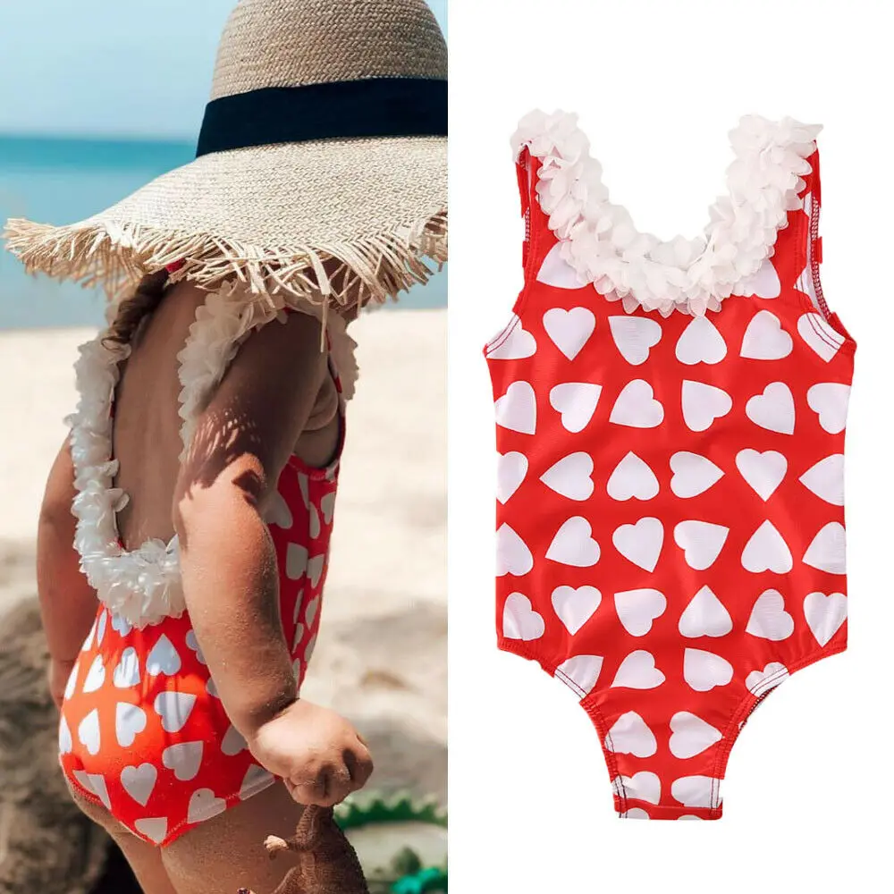 Бесплатная доставка; купальный костюм с цветочным принтом для маленьких девочек; детский купальник-бикини с принтом сердца; цельный купальник; От 0 до 5 лет