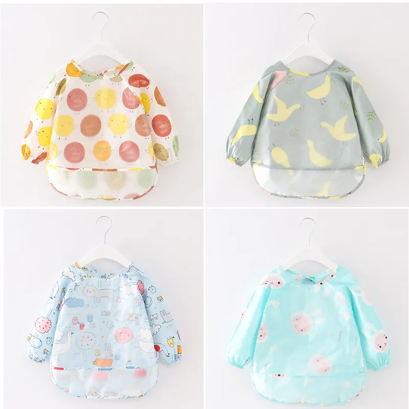 Милые Мультяшные детские нагрудники, водонепроницаемые цветные нагрудники с длинными рукавами для младенцев, детский передник с длинными ...