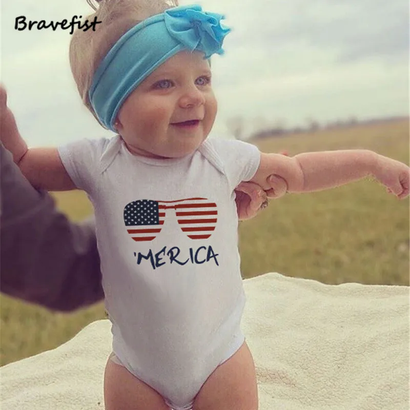 2018 0-1Years лет летние Детские Боди Мерика печати солнцезащитных очков узор комбинезон для детей Изделие из хлопка с короткими рукавами Комбин...