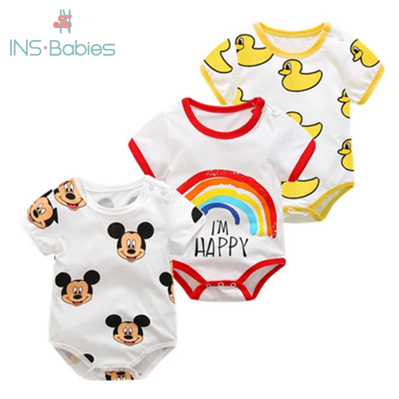 Летне-Весенняя Милая одежда из хлопка для новорожденных мама маленькие девочки и мальчики с короткими рукавами боди с героями мультфильмов...