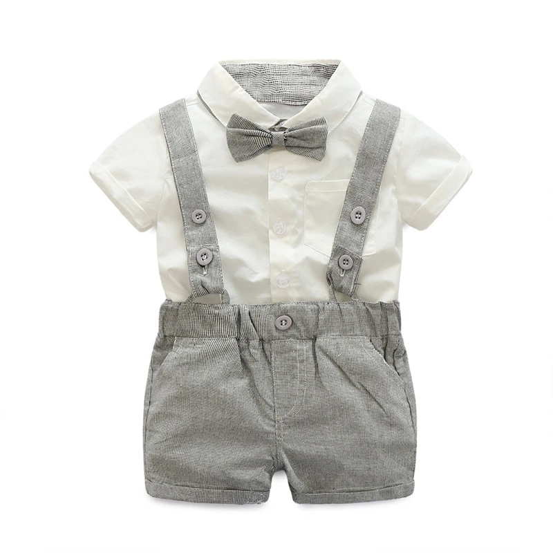 Комплекты для маленьких мальчиков, официальная одежда для малышей, модный галстук + короткая рубашка + комбинезон, одежда для мальчиков, лет...