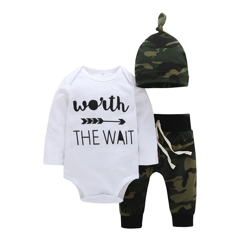 3 предмета, летняя повседневная одежда для новорожденных мальчиков топы с короткими рукавами и круглым вырезом, хлопковый комбинезон + камуфляжные штаны комплект из 3 предметов, 40