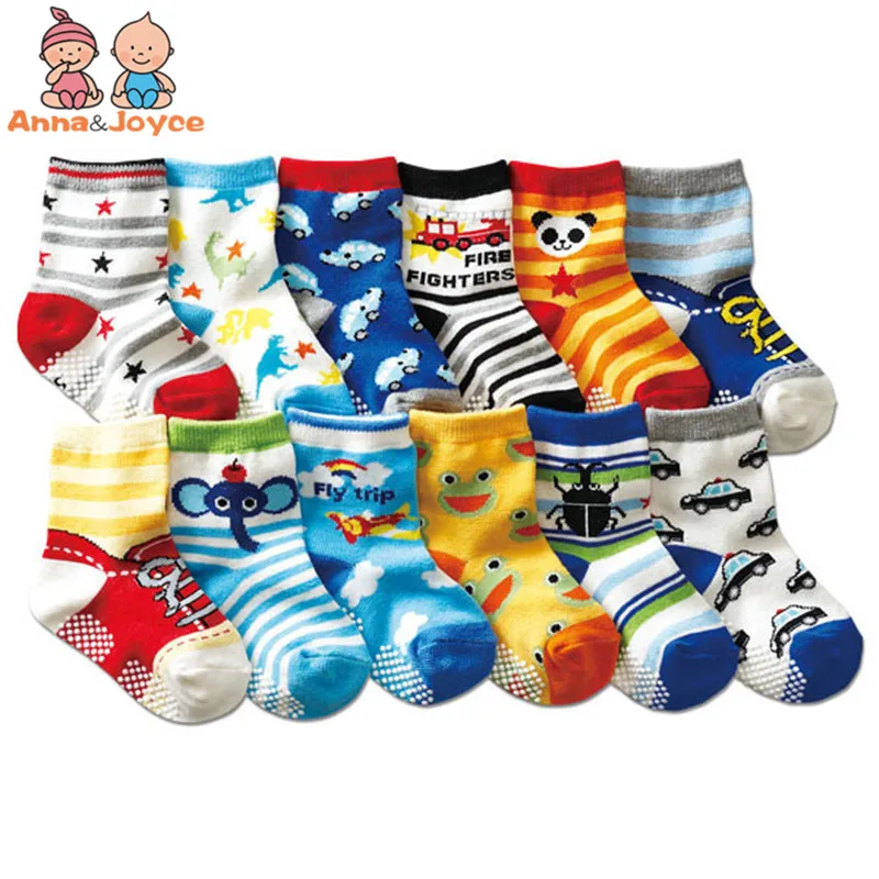 12 пар/лот хлопок Детские носки Следки на резиновой подошве с защитой от скольжения носки для малышей с персонажами из мультфильмов 1--3 детск...