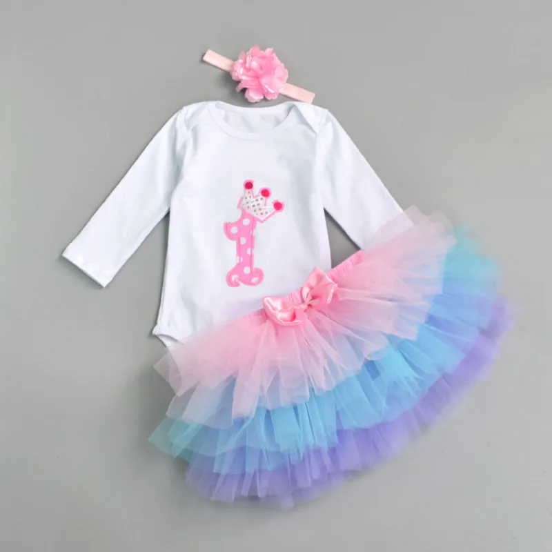 Новорожденных 2019 цветок праздничная одежда комплект для маленьких девочек один год первый праздничное платье с пышной юбкой обувь тюль