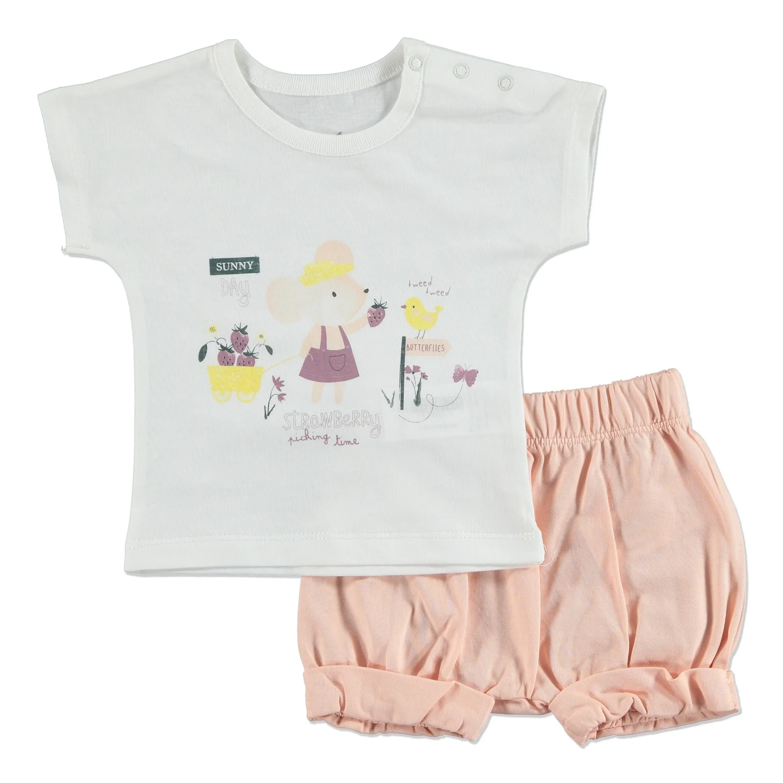 Короткий комбинезон с клубничкой для маленьких девочек ebebek Aziz Bebe