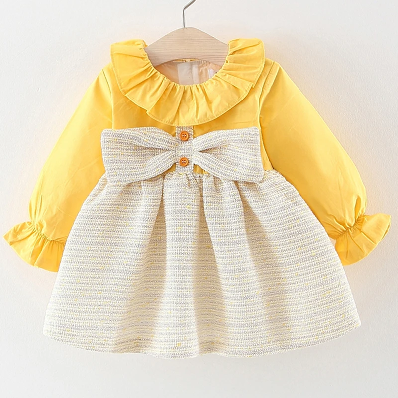 2019 платье принцессы для маленьких девочек, однотонная детская одежда с длинными рукавами и большим бантом, осенняя одежда для дня рождения, ...