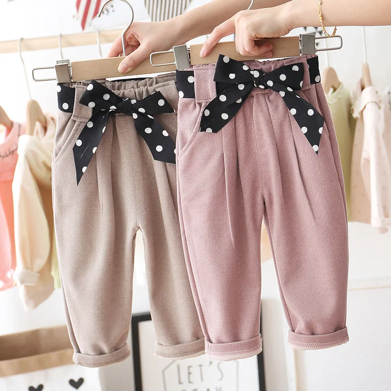 Новые хлопковые брюки с бантом для маленьких девочек, детская одежда на весну-осень, Свободные повседневные штаны для детей