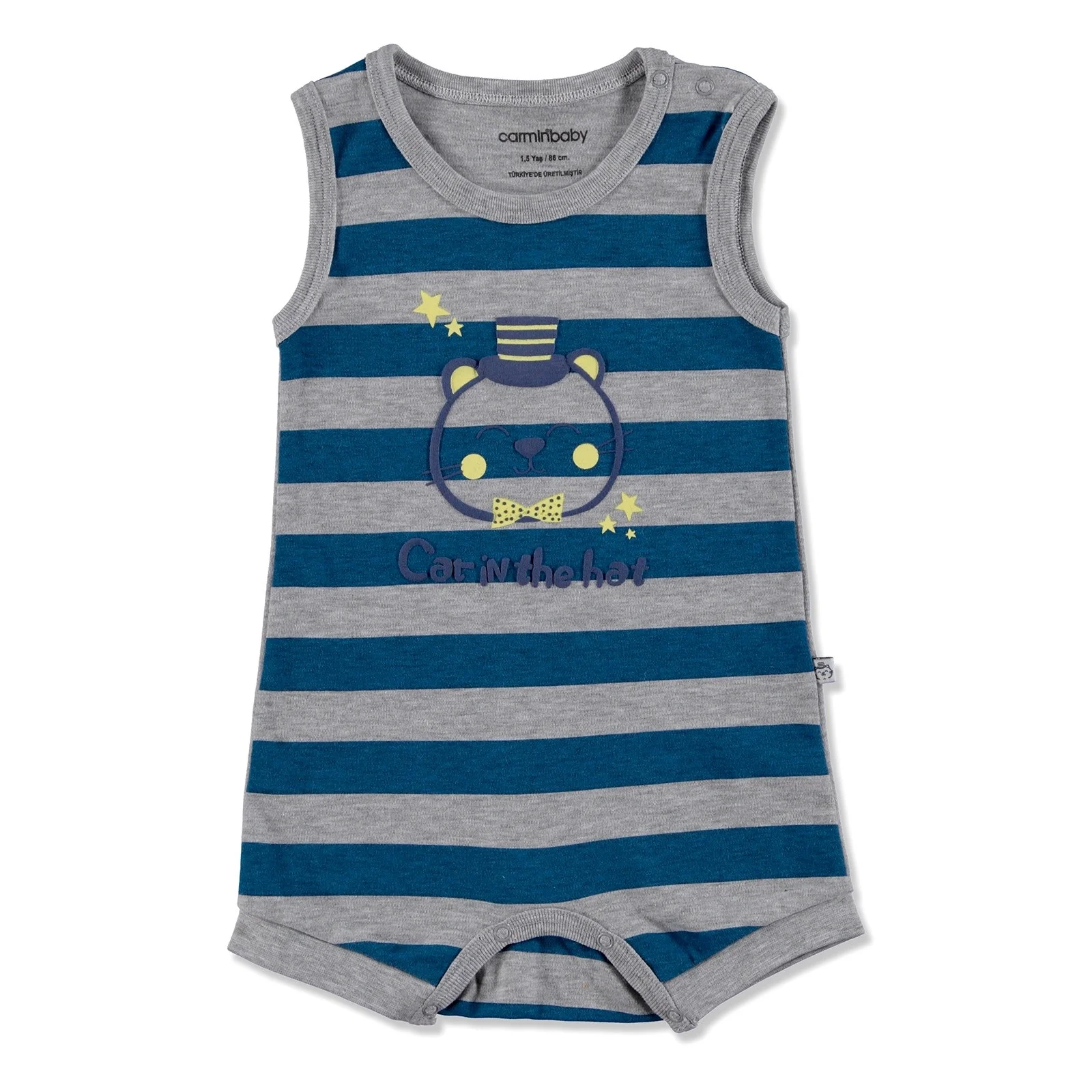 Ebebek Carmin детский летний комбинезон в рубчик с бантиком и принтом кота