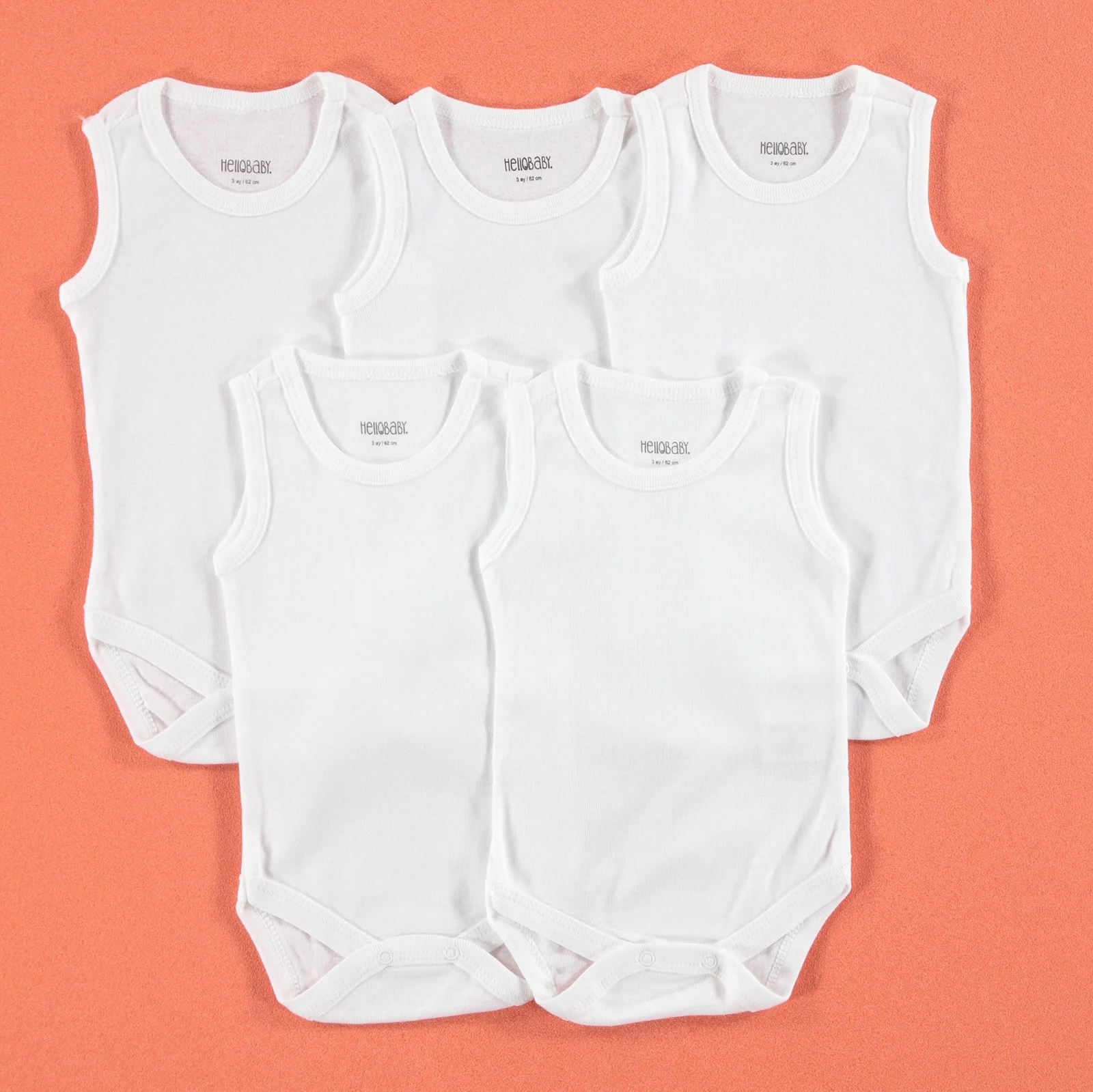 Ebebek HelloBaby базовый Детский комбинезон без рукавов, 5 шт.-белый
