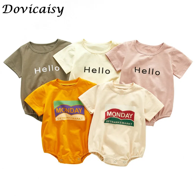 2020 Summer Newborn Baby Boys Girls Bodysuits Hello Printed Summer Short Sleeve Infants Clothes Kids Jumpsuits