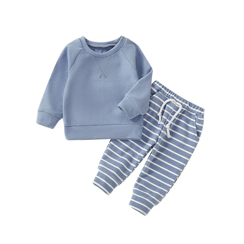 Блузка с длинными рукавами для маленьких мальчиков и девочек, штаны в полоску, пижама, комплект одежды для сна