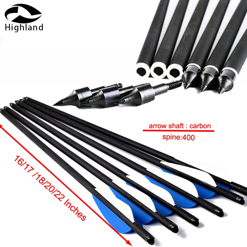 12 шт. 16, 17, 18, 20, 22 дюйма, стрелы для стрельбы из арбалета, 125 зерен, стрелы из углеродного волокна для арбалета, стрельбы из лука, охоты
