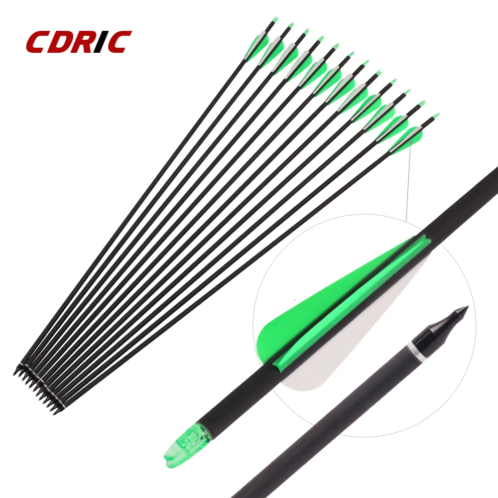 6/12/24 шт. позвоночника 500 из смешанного углеродного стрелки с 2 зеленых и 1 белый Цвет щит из страусиных перьев для изогнутый/луков стрельба из ...