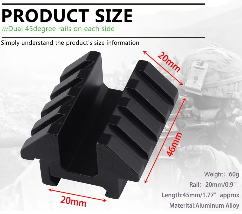 Ledarnell Двойной 45 градусов офсетный двойной боковой адаптер крепления 46 мм длина с 20 мм Пикатинни Вивер рельс Охота