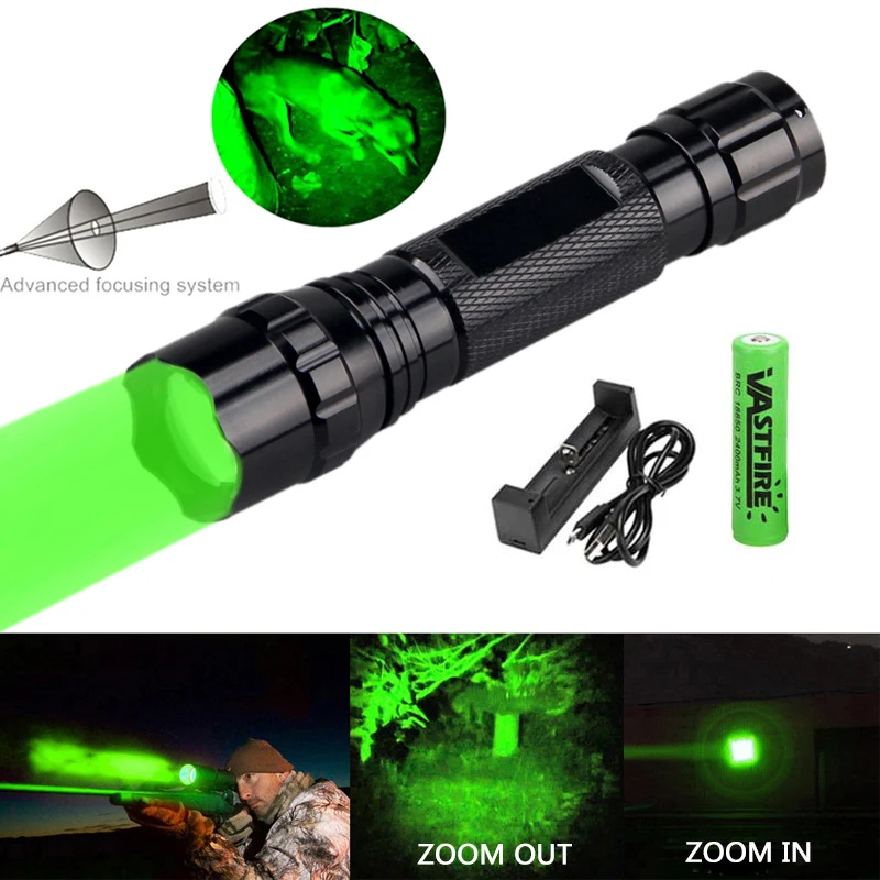 300 ярдов Масштабируемые Led оружие пистолеты светло зеленый тактический фонарик Хищник вармята свинья Охота страйкбол Факел + 18650 + USB зарядно...