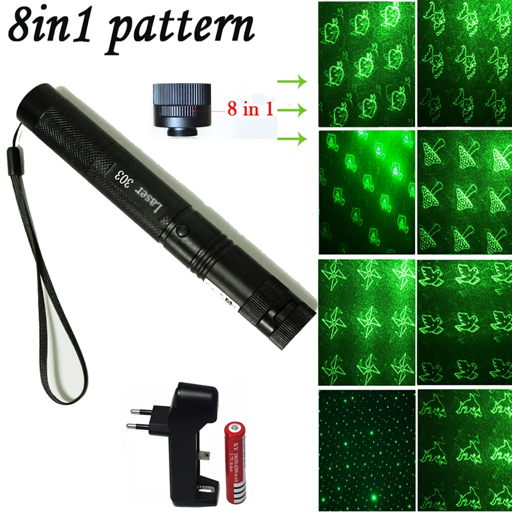 8 в 1 lazer зеленая лазерная указка 532nm 5mW 10000m 303 лазерная ручка Регулируемые мощные лазеры для сжигания света Регулируемый фокус