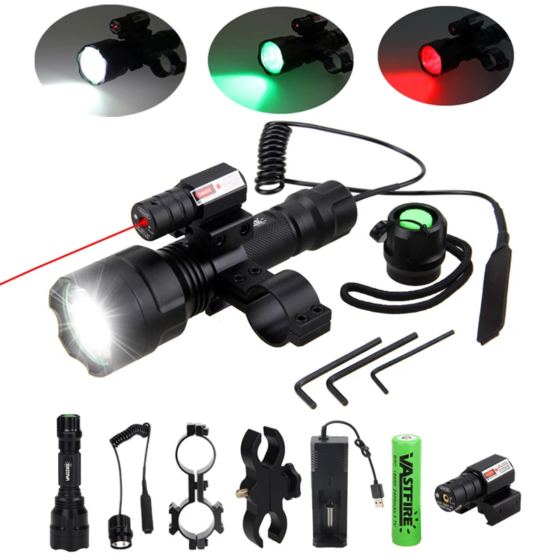 C8 200 ярдов светодиодный тактический охотничий светильник для вспышки винтовочный пистолет-светильник + лазерный точечный прицел + переключатель + 2*20 мм крепление на рельс + 18650 + зарядное устройство