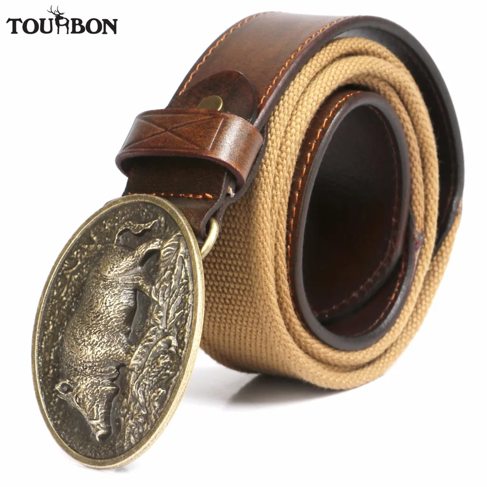 Tourbon охотничий винтажный поясной ремень из натуральной кожи для мужчин, Холщовый ремень с регулировкой длины 108-118 см