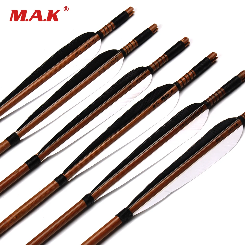 Бамбуковые стрелы для стрельбы из лука, 6/12/24 шт., 450, длина 32 дюйма, с 2 белыми, 1 черными, бирюзовыми перьями, диаметр 7,8 мм