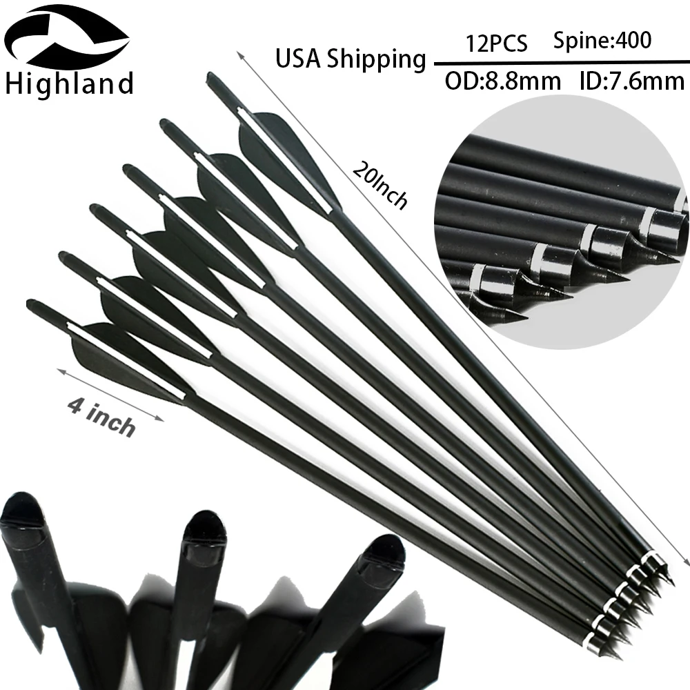 12 шт. 20 дюймов охотничьи карбоновые стрелы для стрельбы из лука 400 для арбалетные болты стрела с 4 "vanes перо и замененный наконечник для охотни...