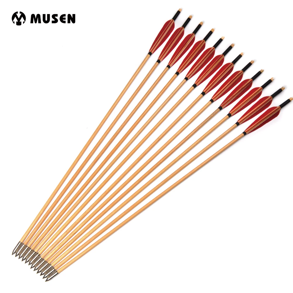 6/12/24 шт. 30 дюймов деревянная стрела позвоночника 500 OD 8,5 мм с белыми сосновыми стрелками и красным турецким пером для стрельбы из лука