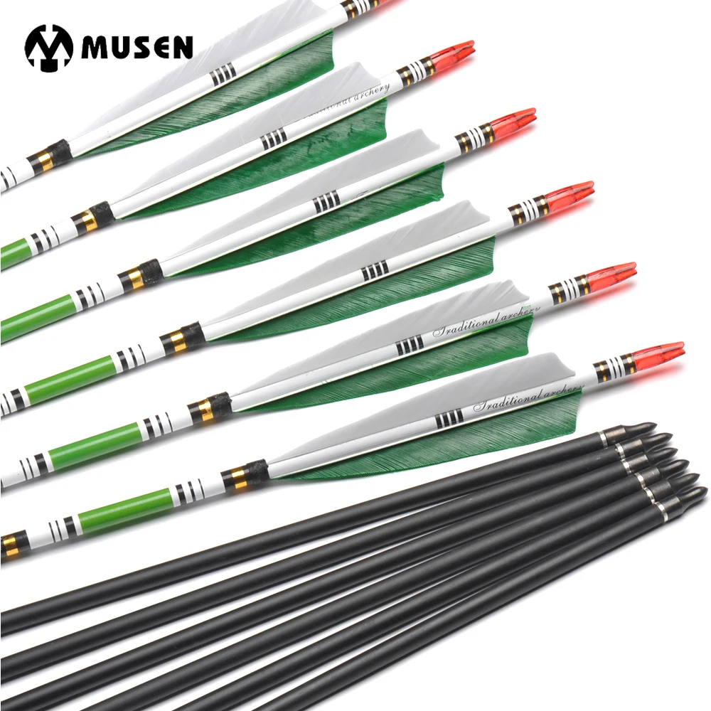 6/12/24 шт 32 дюймов позвоночника 500 ОД 7,6 мм ID 6,2 мм углерода стрелки с белым Цвет реального перо для стрельбы из лука съемки