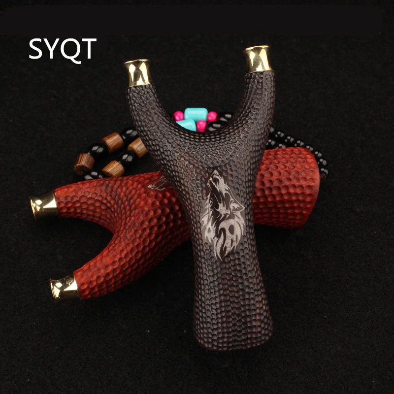 Твердая древесина палисандр Рогатка CNC Медная головка фиолетовый сандаловое дерево открытый плоский кожаный точный охотничий Запуск Рогатка