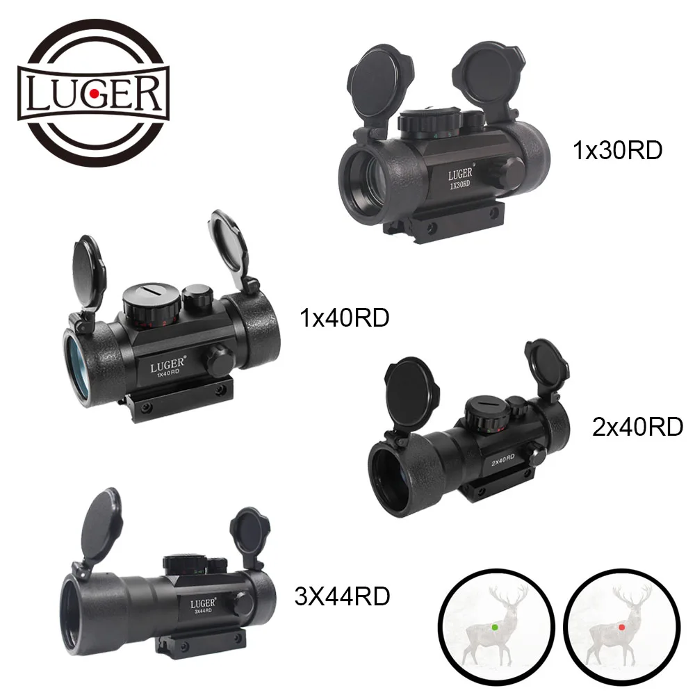 LUGER 1X30 тактический зеленый Red Dot прицел 1X40 голографическая оптика охотничий оптический прицел 3X44 тактический прицел подходит 11 мм/20 мм желез...