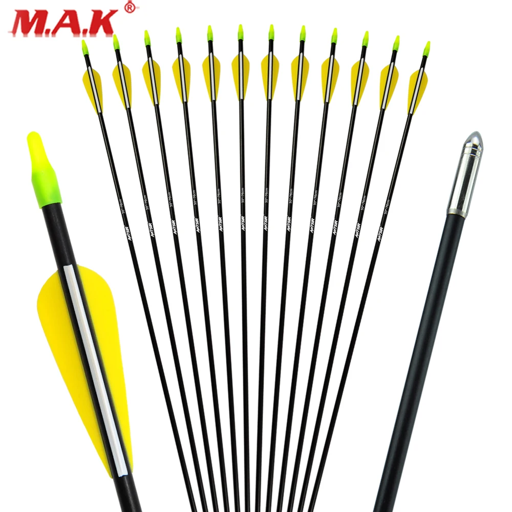 6/12/24 шт стекловолокна стрелка Длина 30 дюймов позвоночника 700 внешний Диаметр 7 мм для 20-50 фунтов изогнутый лук стрельба из лука охота