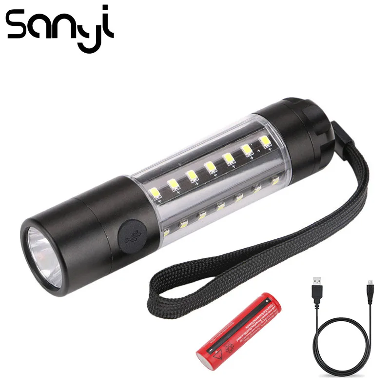 SANYI USB Перезаряжаемый 18650 аккумулятор фонарик 6 режимов T6 LED COB портативный фонарь Кемпинг Охота рабочий свет