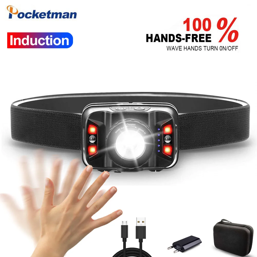 2020 Новый светодиодный налобный фонарь с датчиком движения, перезаряжаемая фара, hands-free USB светодиодный налобный фонарь, подходит для ночной рыбалки