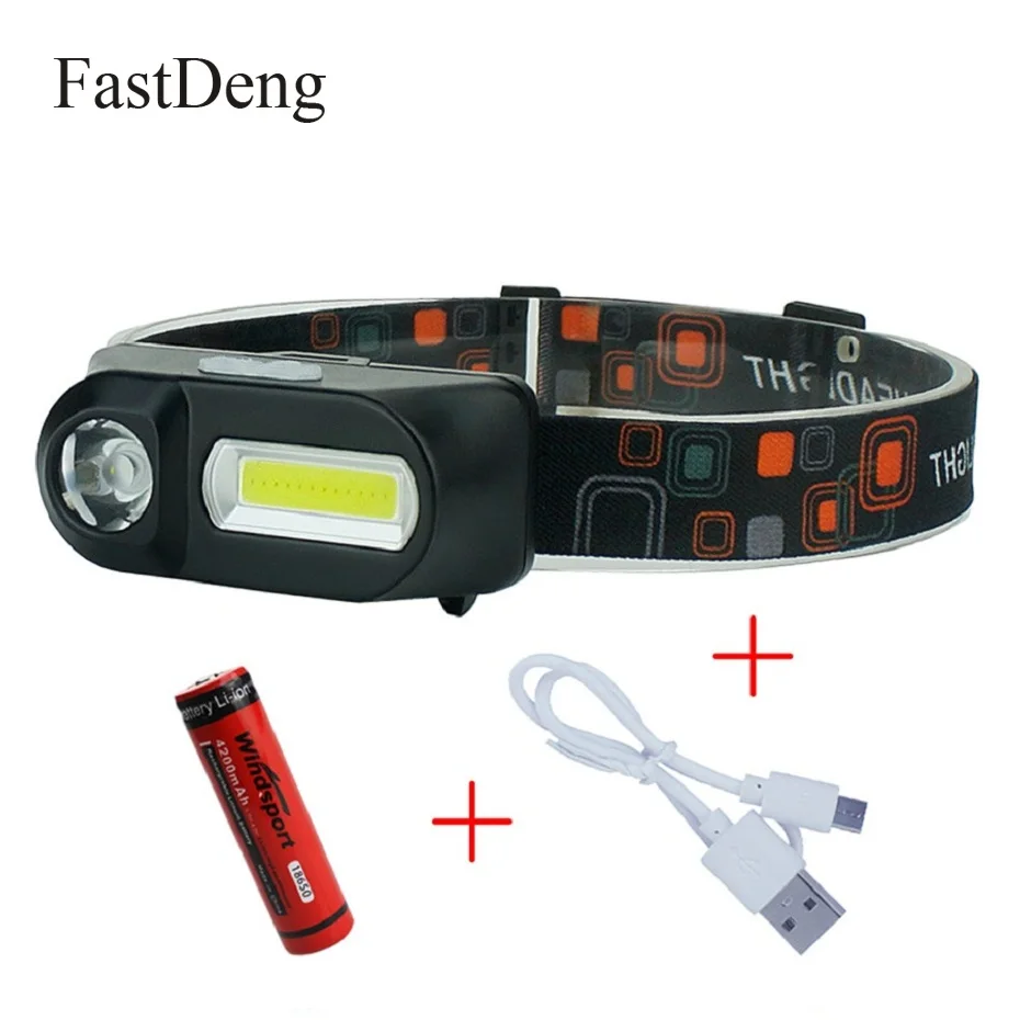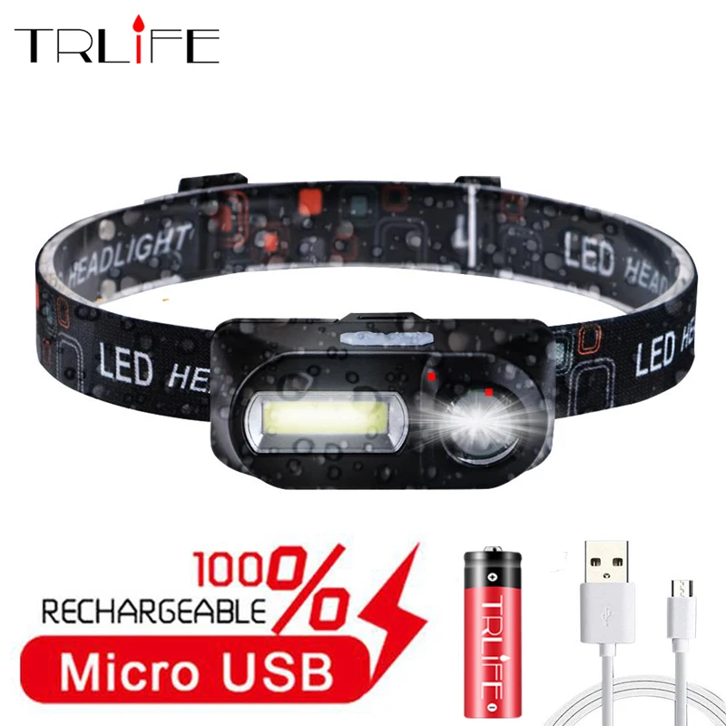 Мини налобный фонарь Водонепроницаемый USB COB + XPE головной светильник 6 режимов ночной бег перезаряжаемая портативная лампа для кемпинга с 18650 батареей