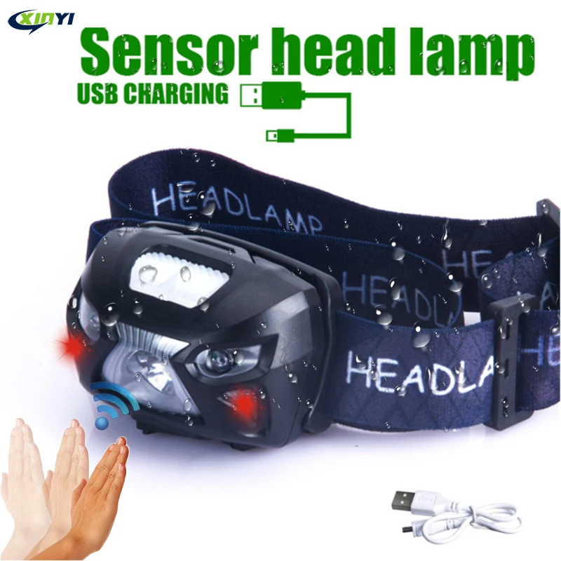 2020 Новый светодиодный налобный фонарь с датчиком движения, перезаряжаемая фара, hands-free USB светодиодный налобный фонарь, подходит для ночной рыбалки