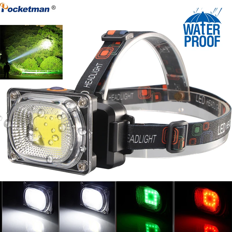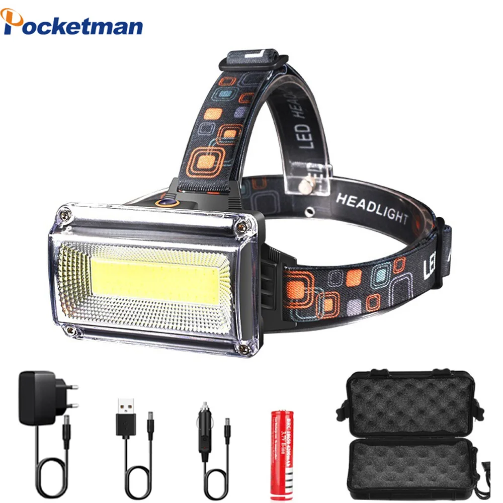 Мощный COB светодиодный налобный фонарь DC перезаряжаемый 3 режима Водонепроницаемый Головной фонарь с 18650 батареей для охоты рыбалки