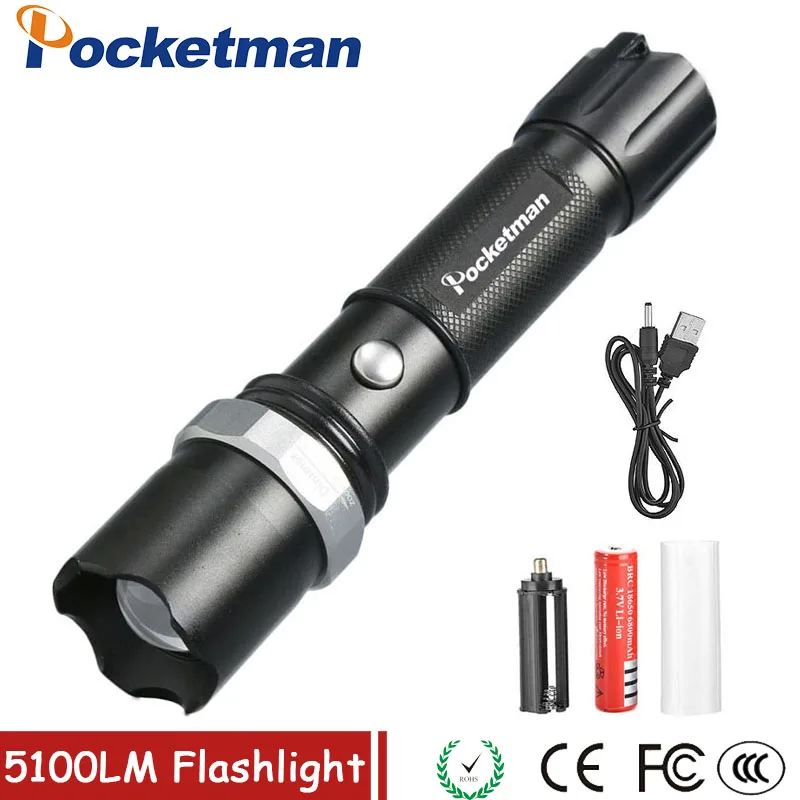 Светодио дный фонарик ультра-яркий факел XML-T6 светодио дный фонарик 5 режимов освещения 5100 люмен Зум светодио дный фонарик ИСПОЛЬЗОВАТЬ 18650 и...