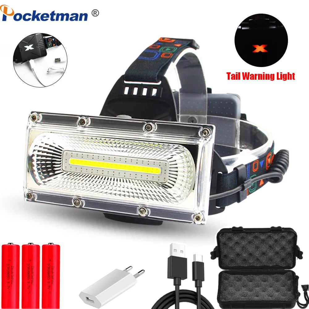 8000лм Высокая мощность COB светодиодный светильник водонепроницаемый головной светильник USB Перезаряжаемый налобный фонарь для использования 18650 Головной фонарь для вспышки