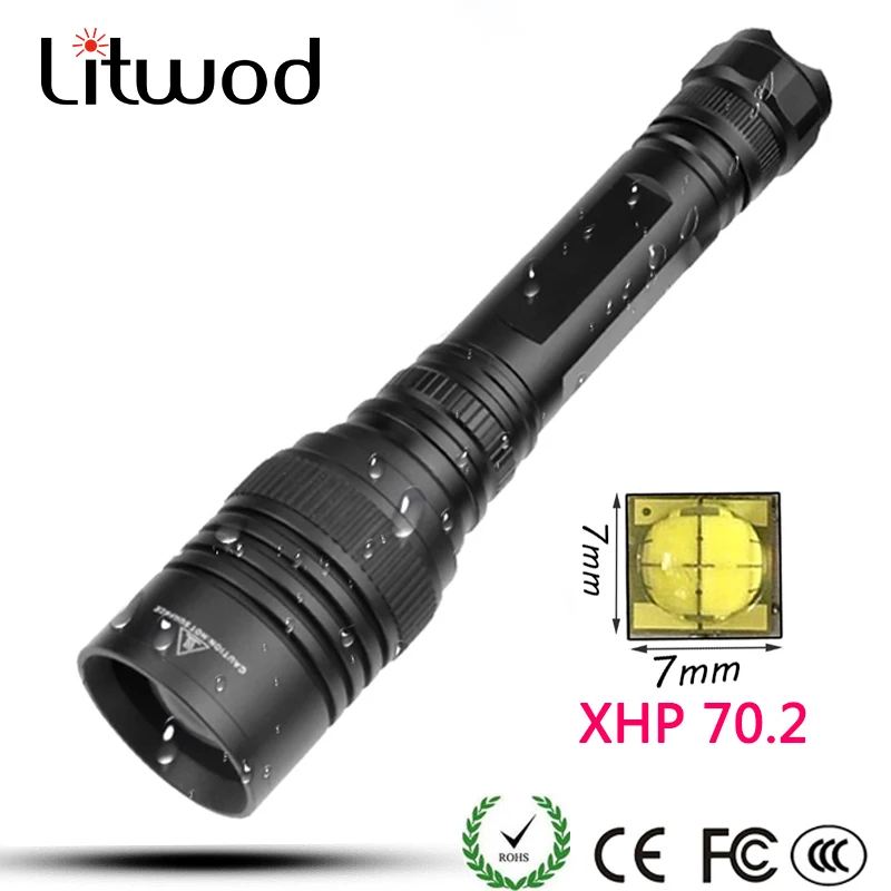 Тактический светодиодный фонарик Litwod Z20 CREE XLamp XHP70.2 32 Вт с чипом 18650 3200lm мощный зум для охоты светильник